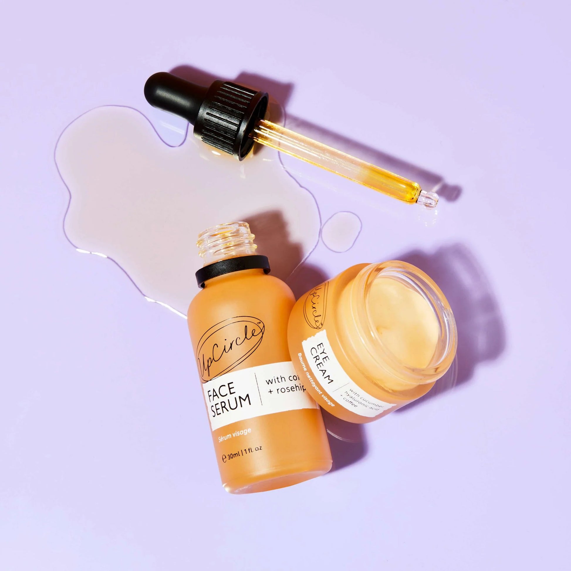 Krachtige koffie om op te fleuren, te voeden en te hydrateren, bevat deze set onze bestverkochte Oogcrème en Biologisch Gezichtsserum. Gemaakt met upcycled koffieolie uit overgebleven koffiedik, helpen deze producten om de verschijning van donkere vlekken te vervagen en je huid te laten stralen.